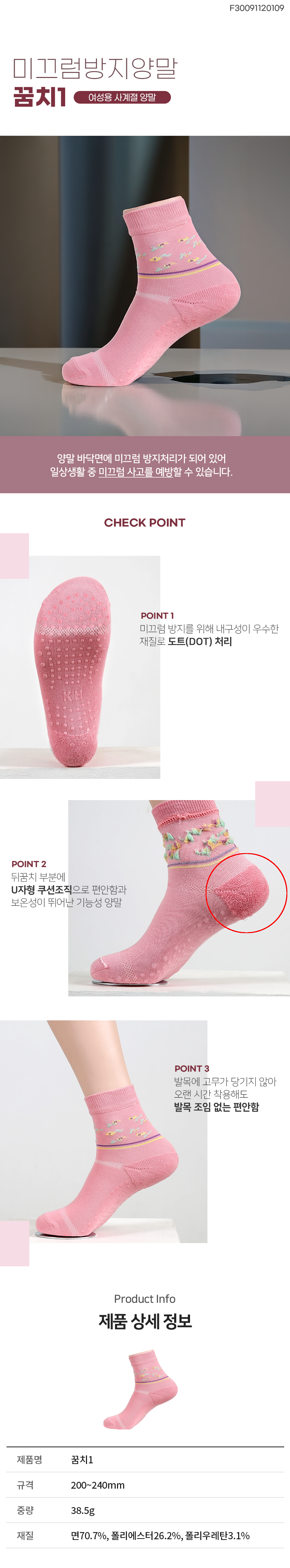 할머니 사계절용 미끄럼방지 양말 꿈치1