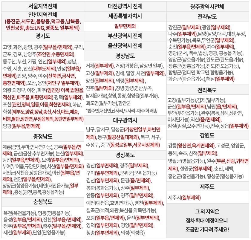 3. 제주도 및 도서산간 등 기타 지역은 배송비가 추가로 발생됩니다.