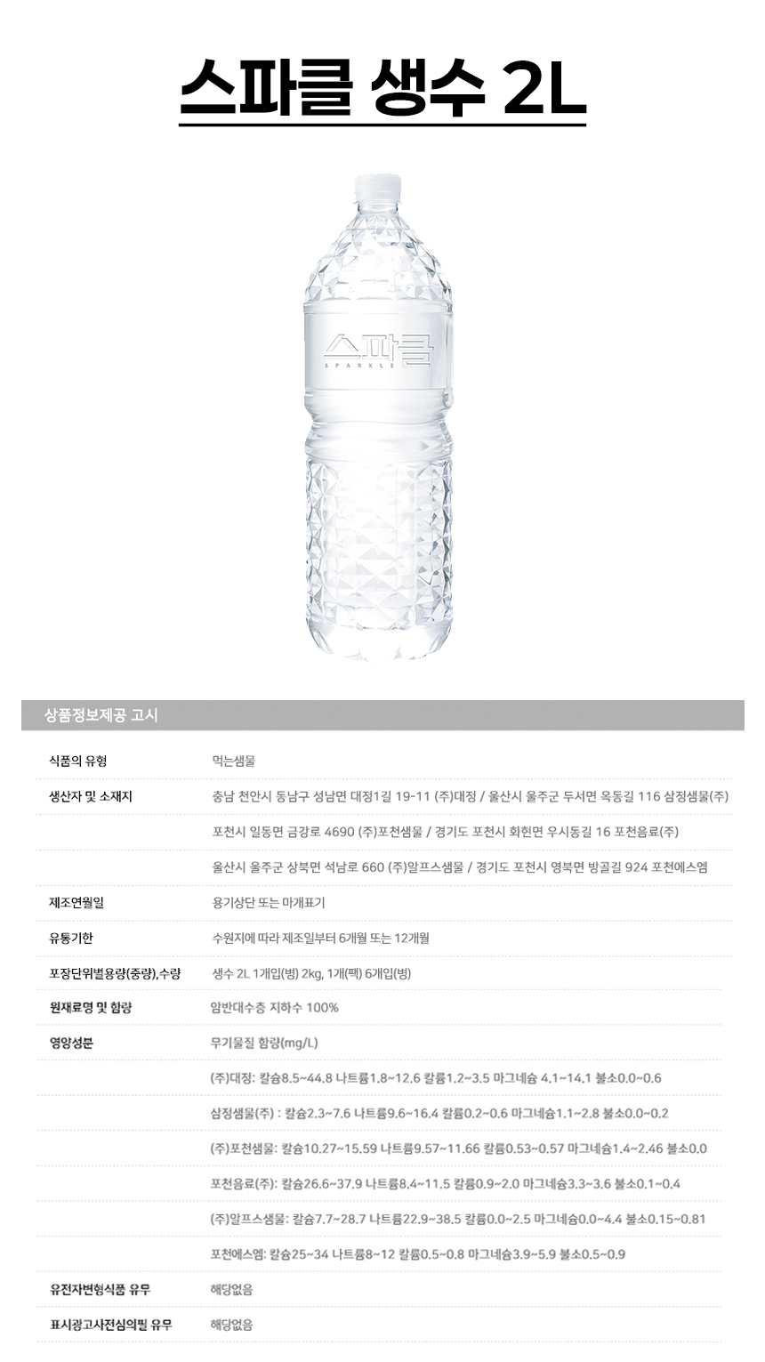 스파클 2Lx12개입 무라벨 생수 물